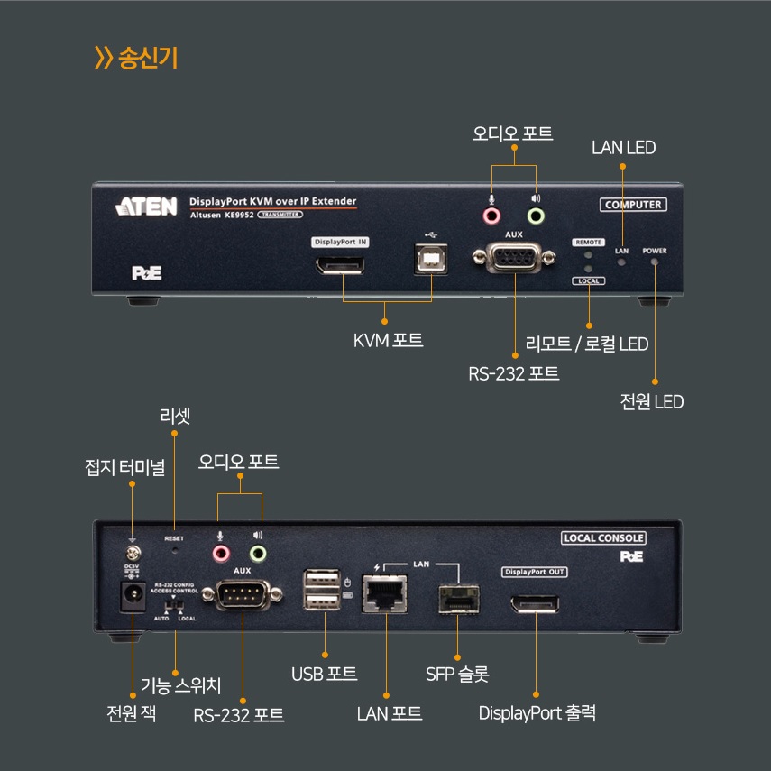 ¢ÀKE9952T¢À 4K DisplayPort ½Ì±Û µð½ºÇ÷¹ÀÌ KVM over IP ¿¬Àå¼Û½Å±â with PoE(´ÜÁ¾)