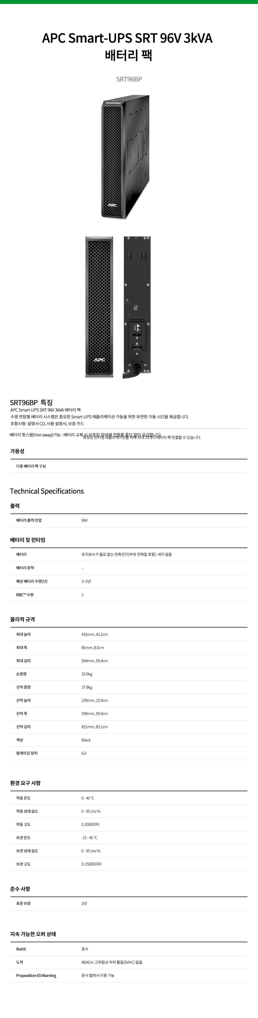 ¢ÀSRT96BP¢ÀAPC Smart-UPS SRT 96V 3kVA Battery Pack